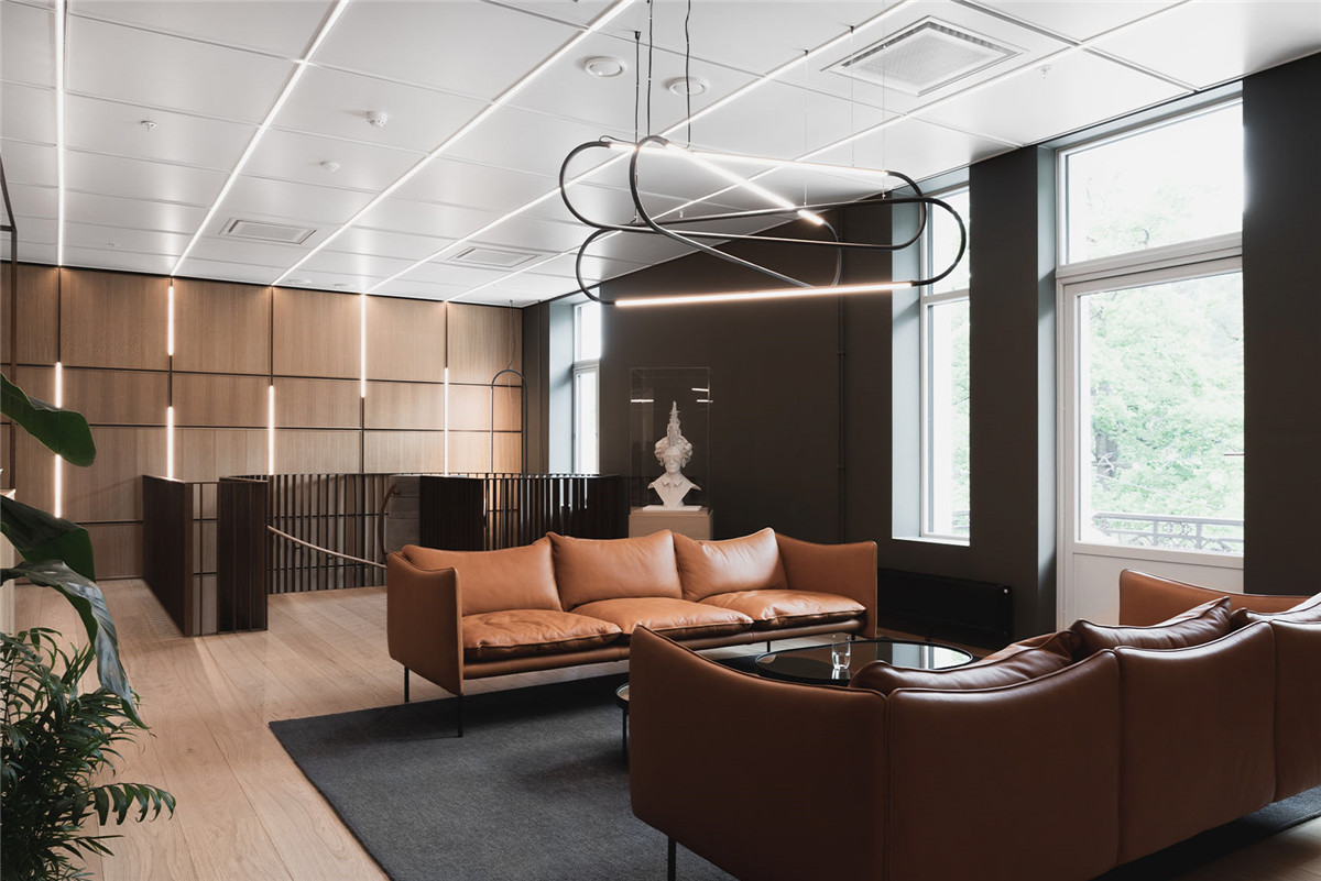 设计保留了建筑原本开放式的楼层格局,形成了一个连贯空间,在营造开敞空间感的同时也促进了交流、活力和专注。透明的玻璃隔墙和隔音措施有助于专注工作,而舒适的开放区域有助于内部成员的互动。 孑易专注于创建高品质的工作环境,通过选用具有永恒美感的材质和轻柔的对比手法来创建个性化的设计解决方案;每一个精心设计的细节都表达出它的高标准;时尚摩登的空间气质兼具现代科技和实用需求。