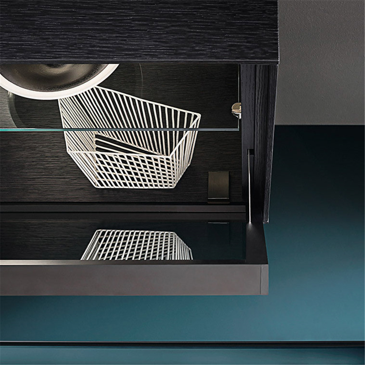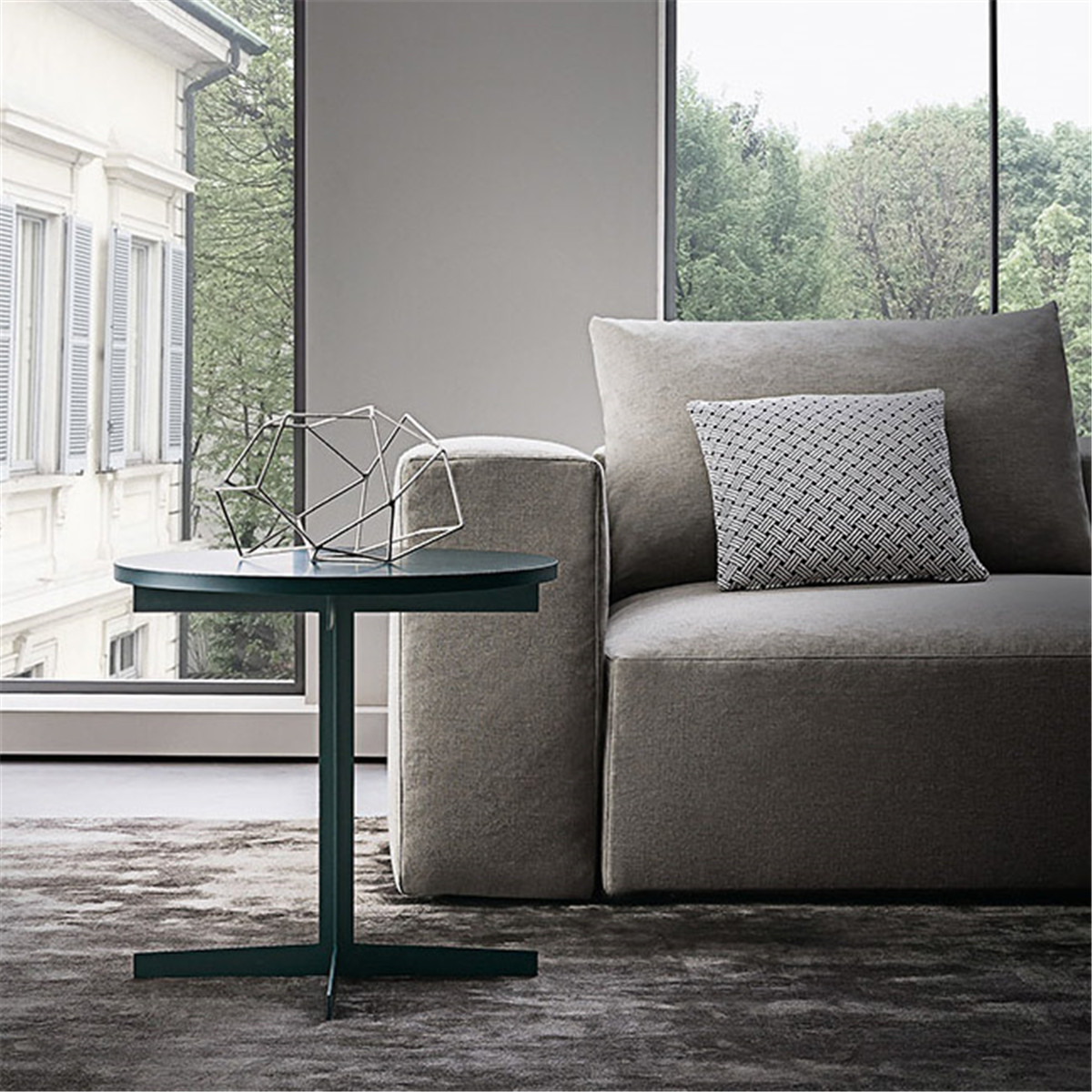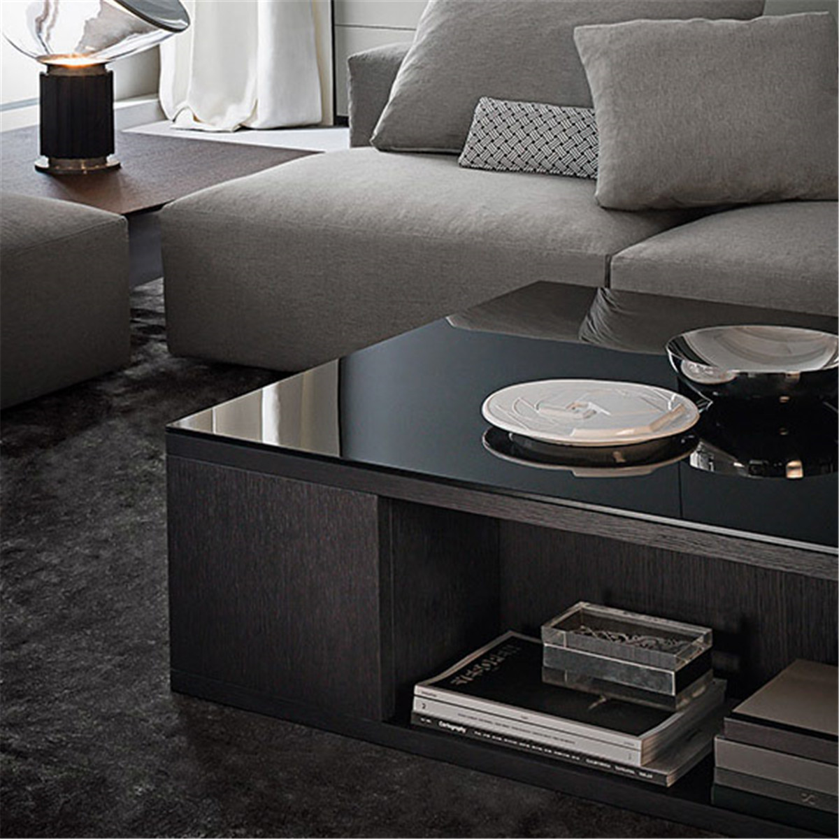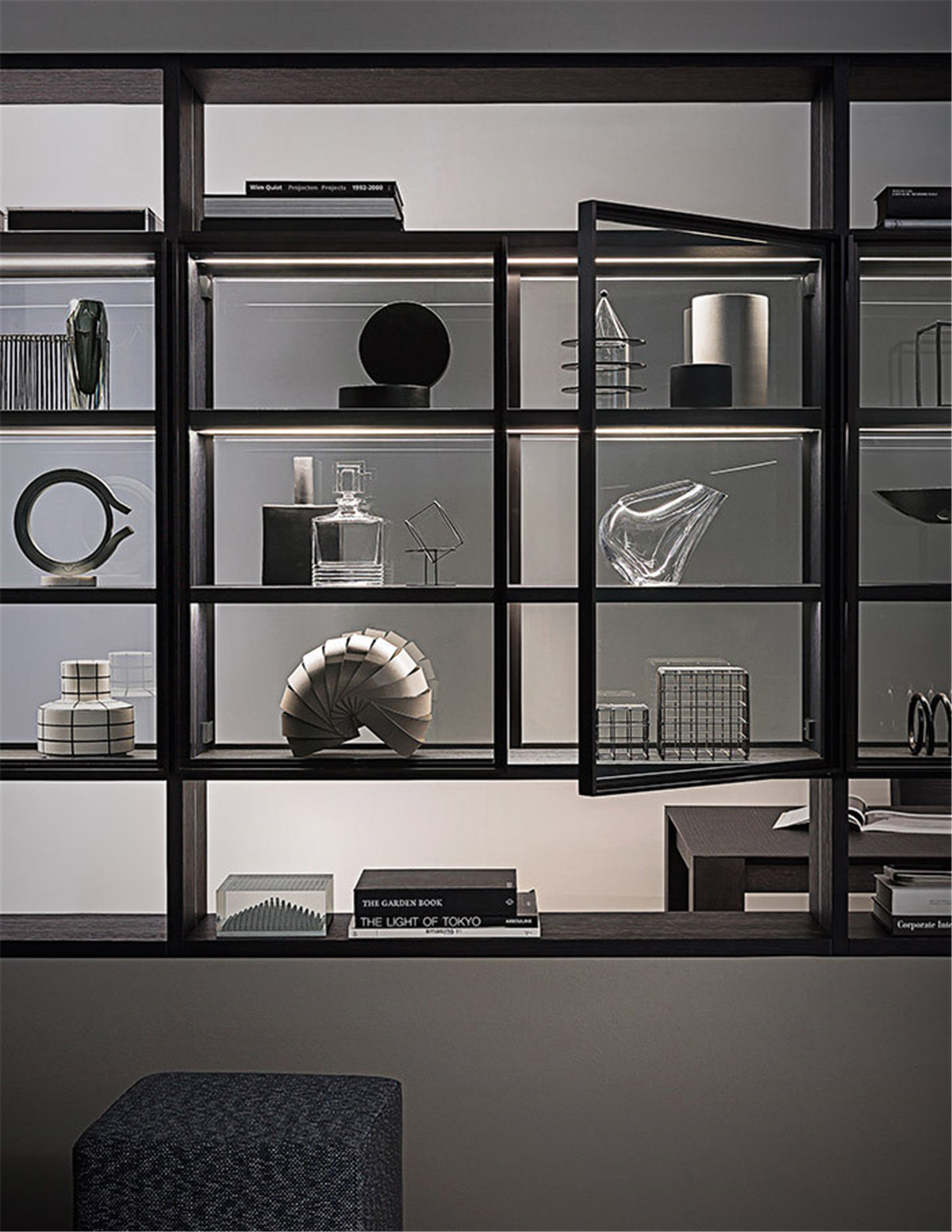想要拥有一颗平淡的心,又想要拉近与幸福的距离。 希望平淡的生活,简单而不枯燥, 宁静而不乏色彩,令人安慰而又不是止步不前。 简洁的黑白灰,整体的冷色调里, 两个人温暖舒适的窝在沙发上看场电影,结束一天的疲惫。公共空间墙面都刷了深灰色的墙漆,柜子用了黑色和木色,所有的配色都是黑白灰和木色。因为客厅的采光非常好,所以即便深色为主也不会觉得有任何压抑的感觉,反而会比浅色更让人觉得放松