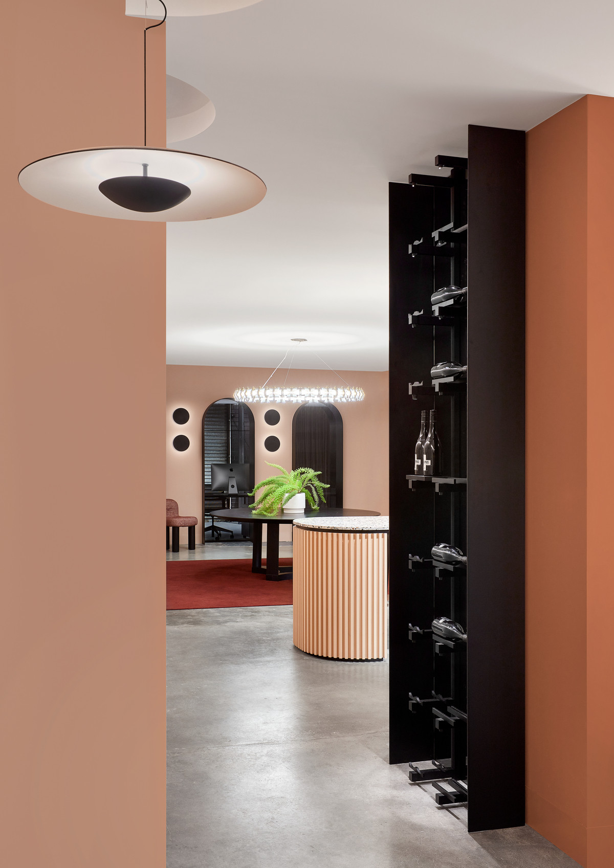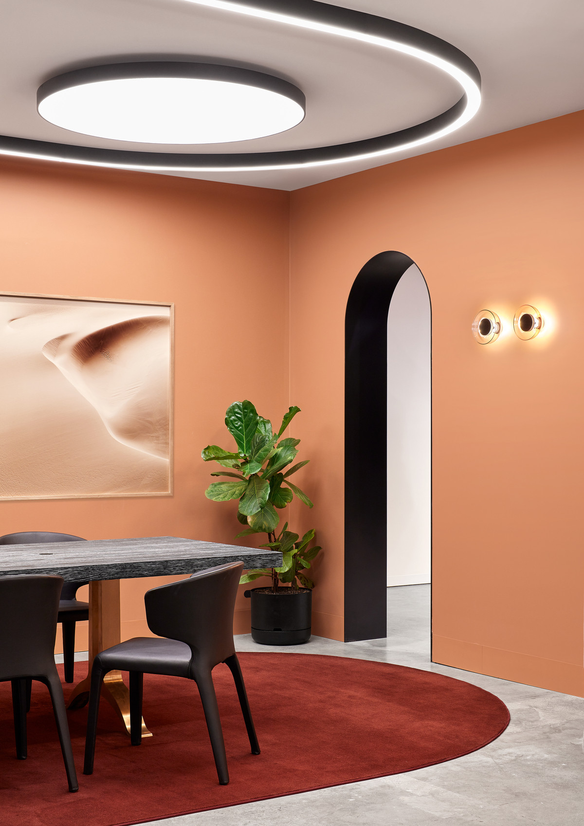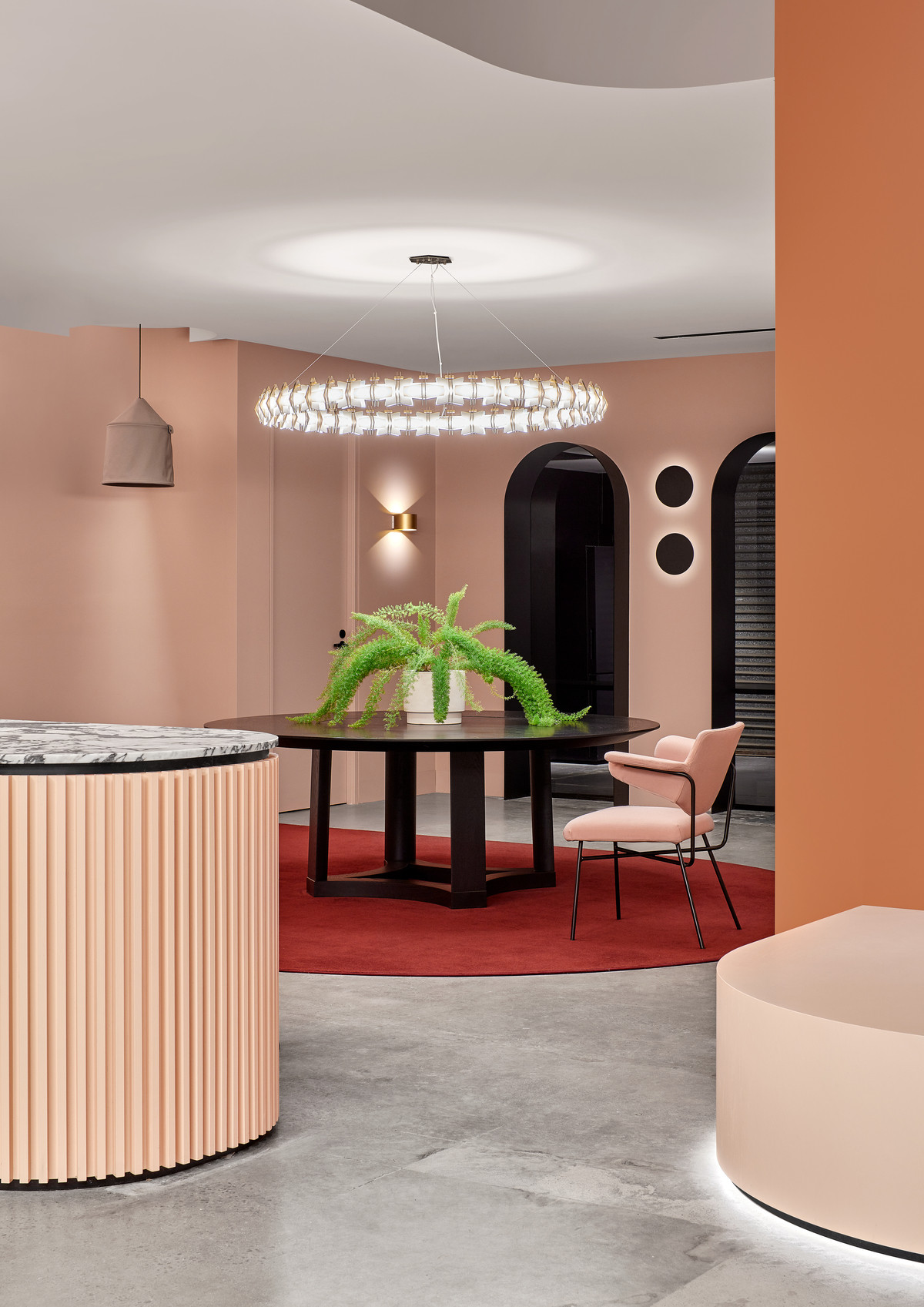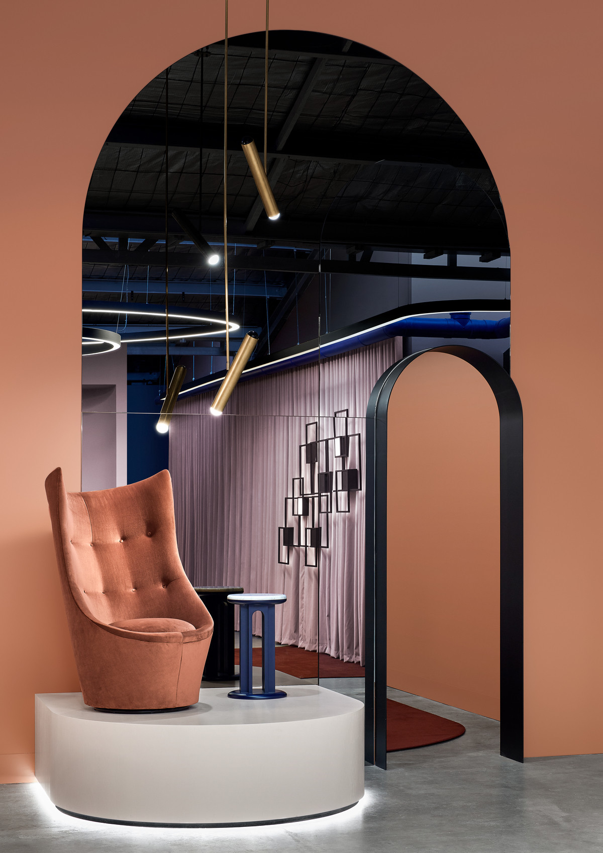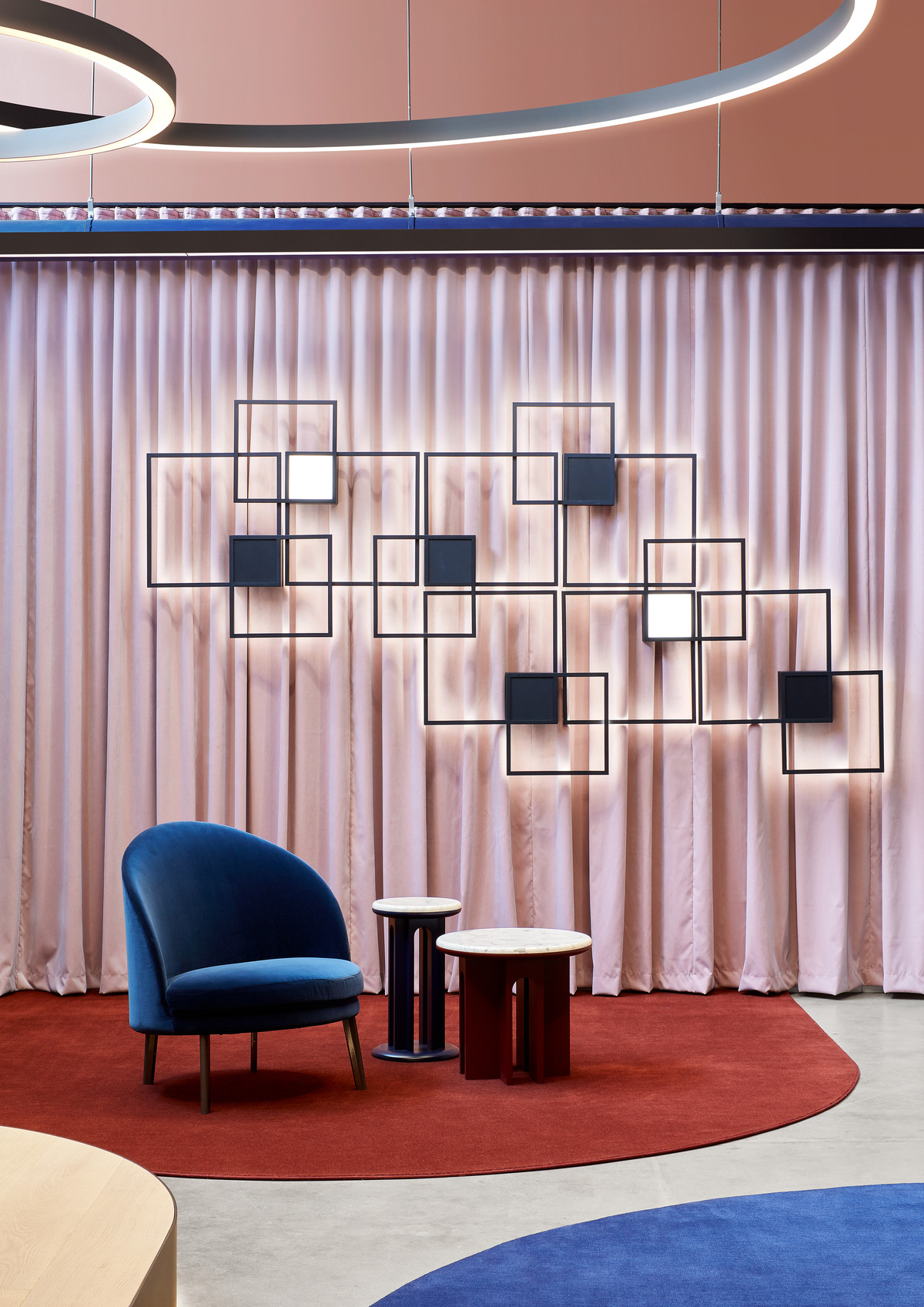 据客户的企业文化需求及现场勘查,设计团队在如此高耸开阔的空间里创建“建筑中的建筑”概念,运用挑空、错层、开放式楼梯、下沉式空间等多种表现形式,去营造舒适的人体尺度空间。丰富的空间构建和表现形式,不仅提供了一个灵活且多元的工作环境,同时打造了一个前沿创新的共用工作空间和交流平台。 多种组合形式的工作空间规划为创意工作者们提供了丰富的自由选择,这里不但有全面开放的工作区也有更为私密的独立小隔间。